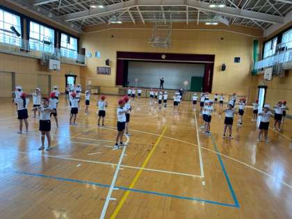 9月5日(木)4時間目、3年生が体育館で運動会の練習をしていました。