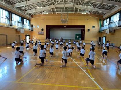 9月9日(月)5時間目、6年生は体育館で練習をしていました。6時間目は運動場へ出ての練習をしていました。暑いけど、頑張れ。