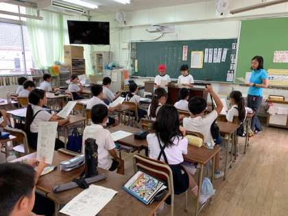 9月18日(水)児童集会の時間に、応援団が各学級をまわり応援合戦の練習をしました。おちらこちらの教室から「いけいけ1年・・・」や3・3・7拍子が聞こえてきました。