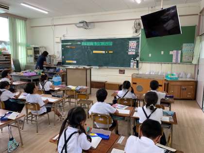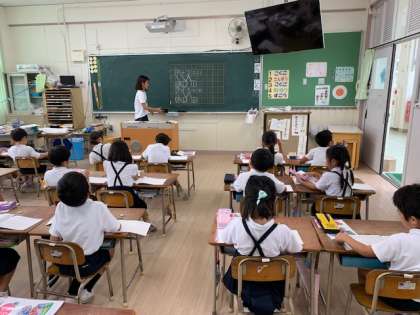 10月2日(水)1時間目、1年1組、2組ともに算数をしていました。くりあがりのあるたし算を学習していました。「さくらんぼ図」に表して考えていました。