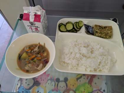 10月7日(月)お好み焼き、豚汁、きゅうりの甘酢あえ、ごはん、牛乳