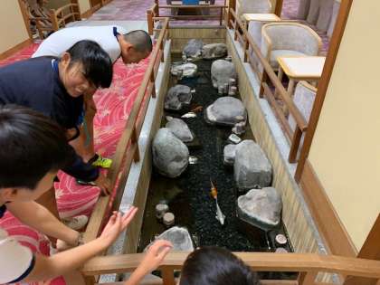 修学旅行 ホテルのロビーには鯉が泳いでいる!