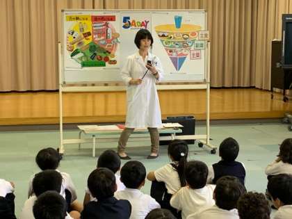 10月24日(木)2時間目、3年生は社会見学に行く前に、ライフの方から栄養のお話を聞きました。この後のライフでの買い物体験に生かされるでしょうか?