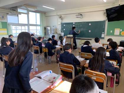 10月31日(木)5時間目、6年2組は算数で「道のり」と「時間」と「速さ」について学習していました。積極的に手が挙がっていました。