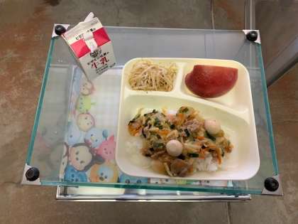 11月1日(金)中華丼、もやしの中華あえ、牛乳、りんご