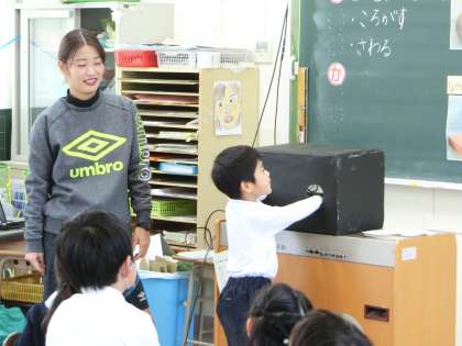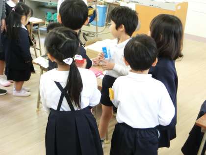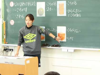 11月1日(金)2時間目、1年2組で算数の研究授業が行われました。子ども達はころがる形ところがらない形の特徴を調べるのに一生懸命でした。