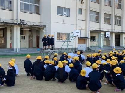11月6日(水)今日の児童集会は、体育館に椅子が並んでおり使えないので運動場で行いました。声から先生を当てるクイズで楽しかったです。