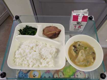 11月20日(水)なまりぶしのしょうが煮、みそ汁、ほうれんそうのおひたし、ごはん、牛乳