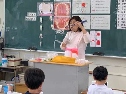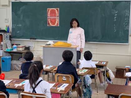 11月26日(火)2年生で歯みがき指導がありました。歯を染めて、歯垢をどのようにしたらとれるかを教えていただきました。