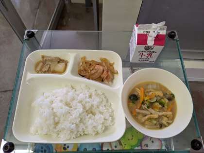 12月12日(木)鶏肉の甘辛焼き、みそ汁、だいこんの煮もの、ごはん、牛乳