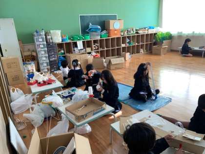 12月20日(金)1時間目、2年1組は生活の学習でした。おもちゃづくりをしていました。