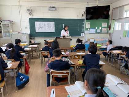 1月9日(木)1時間目、3年2組は国語を学習していました。「気持ちを言葉に」という単元で気持ちを詩にあらわしていくようです。イメージをふくらませるために先生が、同年代の子どもが作った詩を読んでいました。「もし1億円あったら」「けんか」「太陽のおなら」という詩を聞きながら、子ども達はイメージをふくらませている顔をしていました。