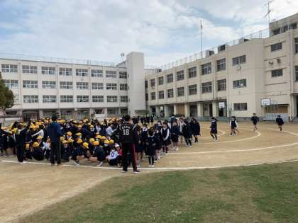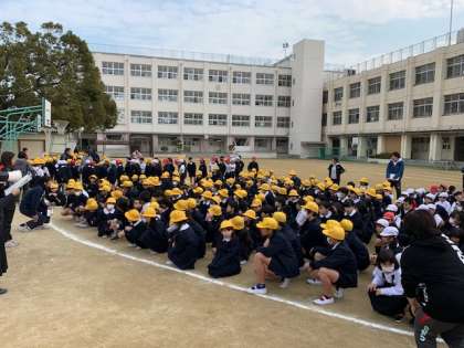 1月20日(月)業間(20分休み)に避難訓練を行いました。運動場で遊んでいる子、教室にいる子、図書室にいる子それぞれが命を守る行動をした後、西門前に集合しました。その後津波を想定して3階以上に避難しました。
