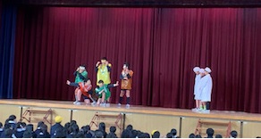 1月22日(木)本日の児童集会は給食委員会の発表でした。給食週間に合わせての発表で、野菜戦隊ゴレンジャーが登場し、大いに盛り上がりました。
