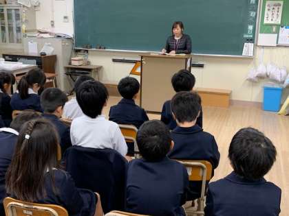 1月23日(木)2時間目に3年2組でおはなし会がありました。大正図書館の読み聞かせのグループ「ひまわりの会」より2名お越しいただきました。真剣に聞き、場面を想像している子が多いように思いました。