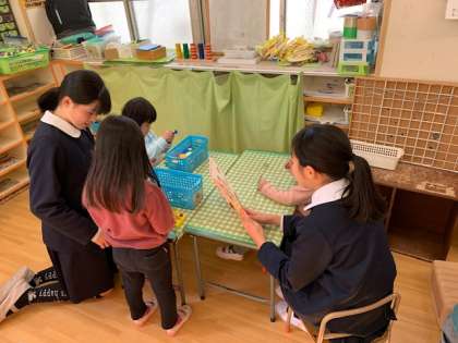 自己紹介をしている時には、緊張していた子ども達も、幼い子ども達とふれあう中で、表情がどんどん変わっていきました。