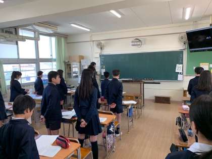 2月13日(木)5時間目、6年2組は発表の練習をしていました。