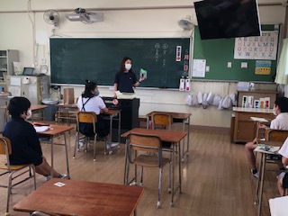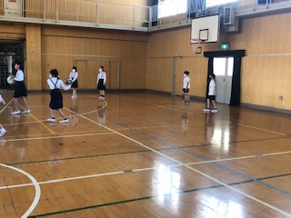 復習を終えた後は、講堂で軽い運動をしたり、社会科の課題について答え合わせをしたり、短時間でしたがたくさん活動できました。