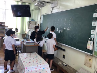 2年生、3年生の教室をのぞいてみると、「こくばんがかり」「としょがかり」などを決めていました。