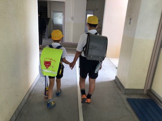 朝、ふと廊下を見ると、高学年のお兄ちゃんと1年生が仲良く歩いています。聞いてみるときょうだいではありません。「家が近所やから」とお兄ちゃんが連れてきてくれたそうです。