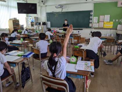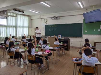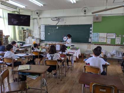 1時間目の算数の様子です。3年生2クラスを3つに分けて学習しました。時刻や時間の求め方を考える学習でした。時計を使って学習しました。