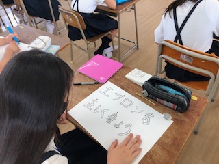 給食委員会では、給食の際に気をつけてほしいことや、好き嫌いなくおいしく給食を食べようと呼びかけるポスターを作成していました。