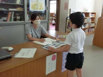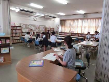 7月から、図書館ボランティアの方に来ていただき、2時間目後の20分休憩に図書館を開放していただいています。