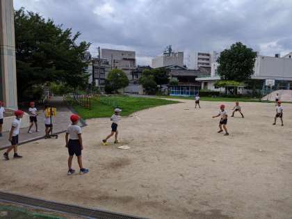 球技クラブでは、ラケットベースボールをしていました。ラケットを使って思いっきりボールを打っていました。
