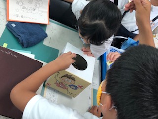 2学期より、プリントを一枚終えるたびに、一枚シールがもらえるビンゴカードのお楽しみが始まりました。