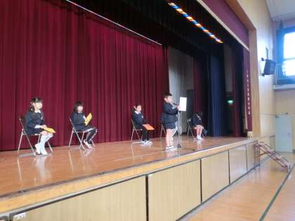 2学期の締めくくりの終業式で、それぞれの学年の代表児童が作文を披露しました。