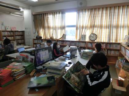冬休みに入り、子どもたちが登校して来ない時期に集中して職員作業を行っています。2学期末から継続中の図書館バージョンアップ作戦! 職員の力を結集して冬休み中も展開中です。