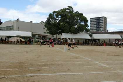 3年生の「ハチャメチャ・フェスティバル」の様子です。音楽に合わせて、髪をかき上げるしぐさや、バイクに乗る様子を表すなど、ポーズもかっこよくきまっていました。踊った後は、台風の目をしました。