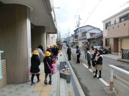 子どもたちの元気な登校を、PTAのあいさつ運動の皆さんが爽やかな朝の挨拶でお出迎えです。子どもたちは少し照れくさそうにしながらも「おはようございます」と声を返していました。PTAによるあいさつ運動は、1月の各週始まりの日に展開していく予定です。子どもたちのあいさつの輪が広がることに期待です。