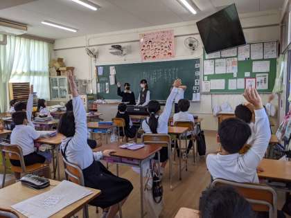 朝の時間にたてわり班で集まり、泉東カーニバルで行うお店を決めました。