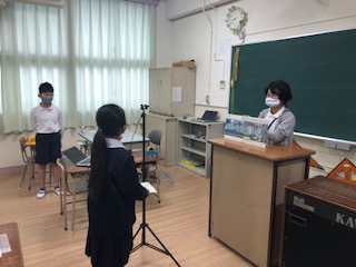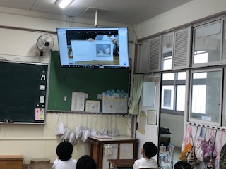 今週は「泉東読書週間」です。そこで、図書委員会の児童が絵本の読み聞かせをしました。例年なら、講堂の大きなスクリーンに絵を映しての読み聞かせですが、今年はオンラインでの発表となりました。