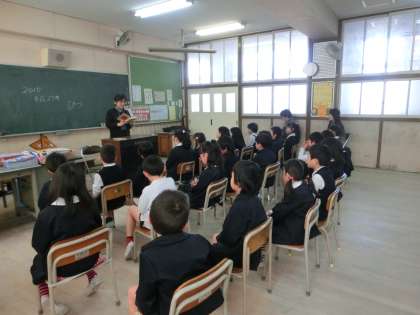 先日の1年生に続き、2年生でも「学校おはなし会」を開きました。読み聞かせボランティア「ひまわりの会」の方々により、朗読あり、絵本あり、語りありと、バラエティに富んだおはなし会でした。
