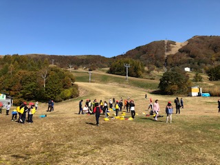 下山してきました。 ジュースを飲んで、竹トンボで遊んでいます。