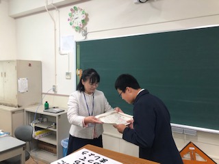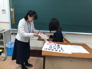 夏休みの宿題として出されていた「税に関する習字」の表彰です。