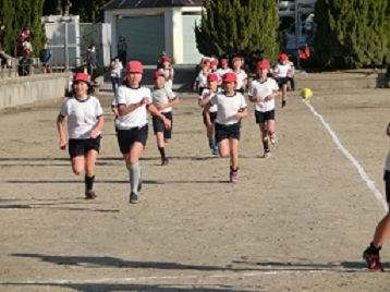 4年生は全学年のトップを切って、スタート!まだ冷たい朝の空気を切り裂きながらの熱い走りでした。