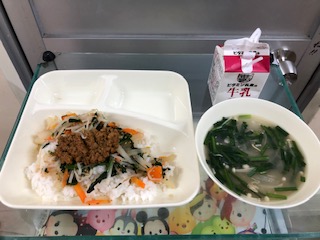 今日の献立は、ドライカレービビンバ、トック、牛乳です。
