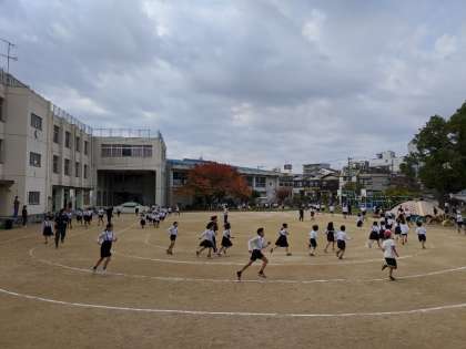 今年は1・3・5年生と、2・4・6年生で一日おきに行います。さらに、同じ日でも1・5年と3年、2・6年と4年で時間も変えて走ります。
