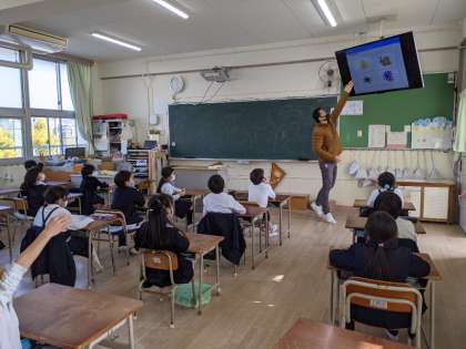 C−NETのラフィー先生も、低学年を中心にいろいろなクラスに入ってくださり、大盛り上がりです。