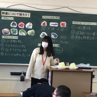 「1日に必要な野菜は何グラムか」について考え、「1日300グラム食べないといけない」ということを教えてもらいました。