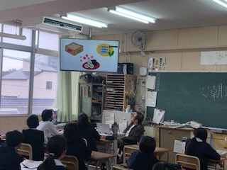今日の校長先生のお話は節分についてでした。パワーポイントを使ってのお話なので、みんなテレビに注目して聞いていました。