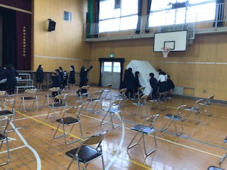 休み時間から張り切って講堂に来て、てきぱきといすを並べたり、マットやとび箱などを運んだり、いすがそろっているか入念に確かめたりと、本当に頼もしい仕事ぶりでした。