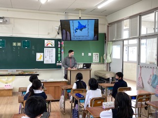 今日、4年1組では、北海道の形に色を塗って、何に見えるかを一人ずつ発表していました。