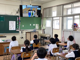 はじめに「いじめ防止」のアニメ動画を見ました。どの学年も集中して画面に見入っていました。