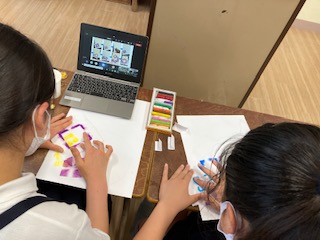 6年生は1,2時間目にオンラインでの図工の授業をしました。