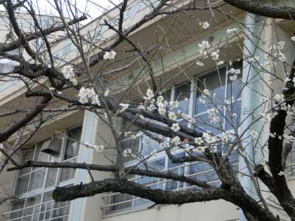 3月10日(火)、今日は近づきつつある春もどこへやら、とても風が冷たい1日となりました。校庭の片隅の梅の木も花を咲かせ、春を実感させてくれてはいるのですが、雪の花も舞いました。雪が舞い、寒風吹き荒れる運動場で、5年生が元気になわとびで駆け足しながら体育の学習に励んでいました。写真ではわかりにくいかもしれませんが、雪が降るなか、子どもたちは半そでの体育着で運動しています。