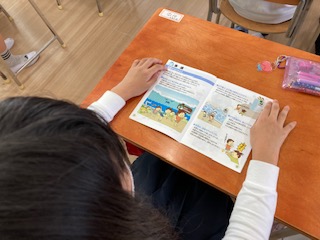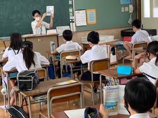 はじめに各学級で防災の冊子「みんなで考えよう」を使って「地震がきたらどうしたらよいか」「津波のおそろしさ」などについて話を聞きました。